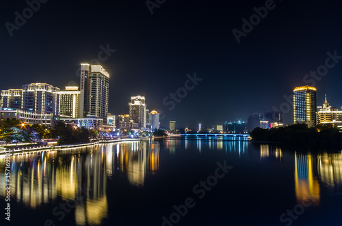 Obraz premium Night panorama view of Sanya city on Hainan island, China