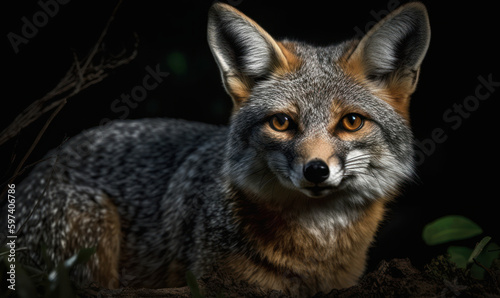 Obraz premium night photo of gray fox on black background. Generative AI