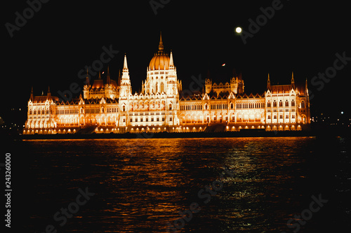 © olegparylyak, Fototapeta premium Night photo of the budapest parliament building