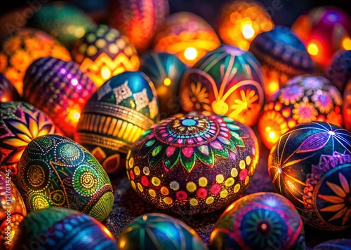 Obraz premium Night Photography: Easter Eggs Glowing in the Dark