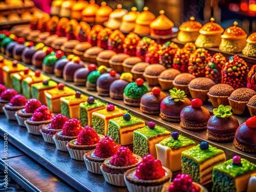 © vekin, Fototapeta premium Night Photography: Enticing Pastries, Creative Dessert Display
