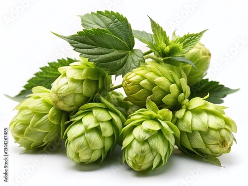 Fototapeta premium Night Photography: Illuminated Hops Cones Isolated on White Background