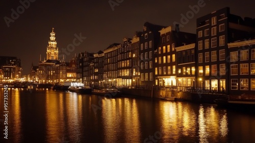 © Damerfie, Fototapeta premium Night Reflections in Amsterdam