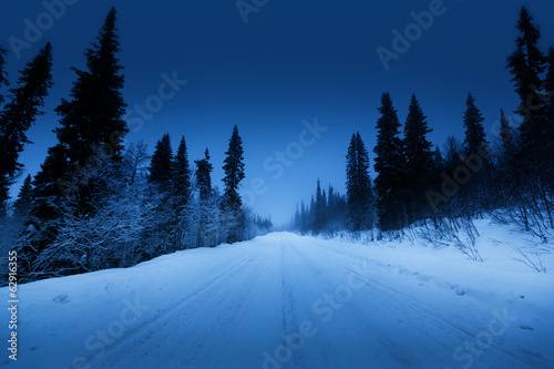 © Iakov Kalinin, Fototapeta premium night road in winter forest