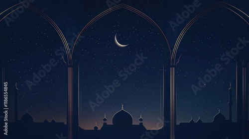 © delvin std, Naklejka premium Night scene with crescent moon and arches.