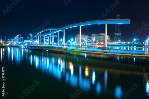 Naklejka premium Night shot of the Rambla de Mar, barcelona, Spain.
