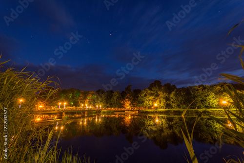 Fototapeta premium Night shot over the lake with bridge and stars