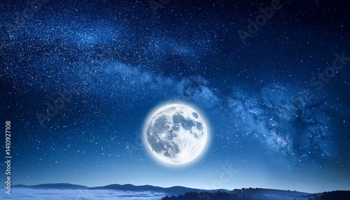 Fototapeta premium Night sky background with moon and stars Full moon background