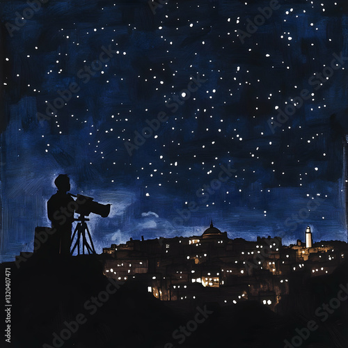 Obraz premium Night Sky, City Silhouette, Photographer
