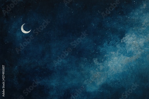 Fototapeta premium Night sky, crescent moon, clouds, stars, calm background, for dreamy design