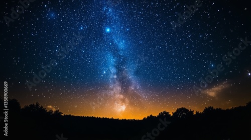 © Alex, Fototapeta premium Night sky filled with twinkling stars and planets over Earth's horizon