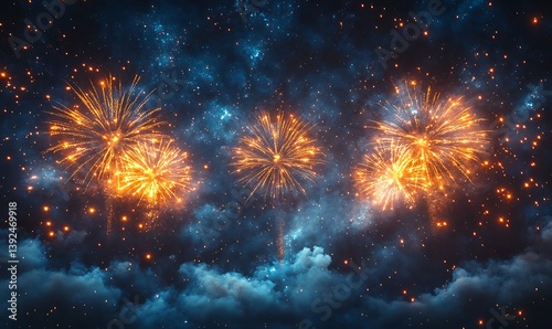 Fototapeta premium Night Sky Fireworks Celebration with Festive Display.
