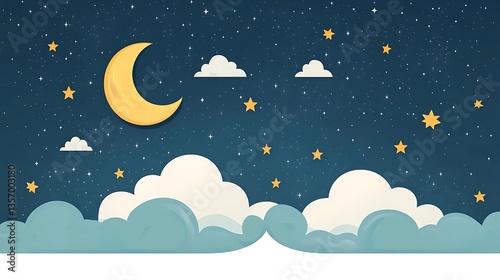 Obraz premium Night Sky for Clouds, Moon, Stars, Paper Art.