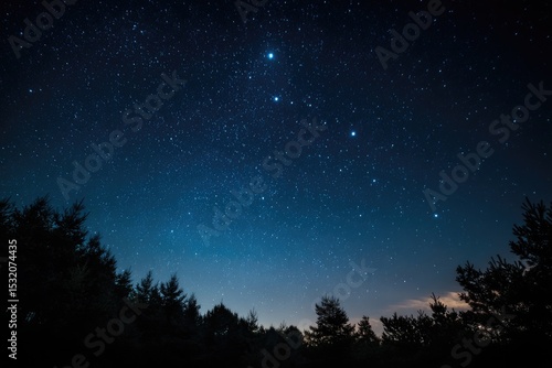 © Yusnira, Fototapeta premium Night sky full of stars above dark forest
