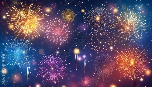 Fototapeta premium Night Sky Illuminated by Colorful Fireworks for a Perfect New Year 2025