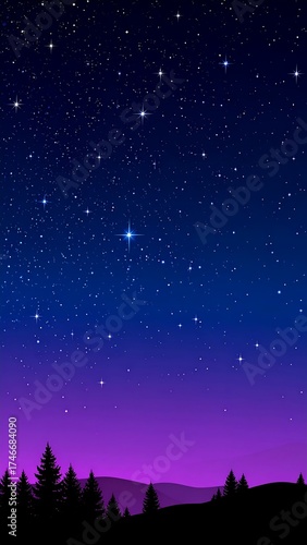 © Baskom, Fototapeta premium Night sky illustration with stars and silhouettes of trees