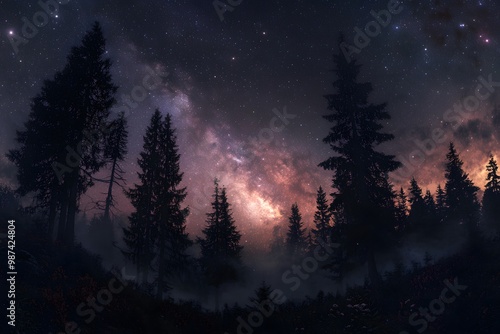 © Matija, Fototapeta premium night sky in the forest full of galaxies, stars and nebula