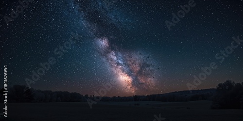 © vxnaghiyev, Naklejka premium Night sky in winter, ideal for astronomy observation and seasonal stargazing activities