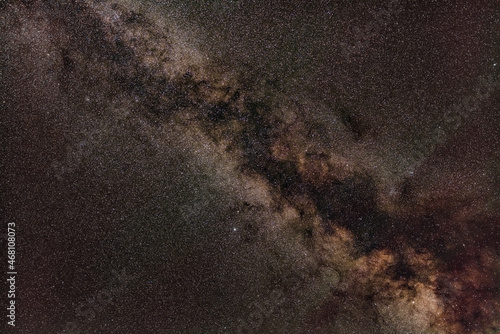 Obraz premium Night sky, many stars with milky way around Aquila and Sagitta constellation visible. Long exposure stacked photo