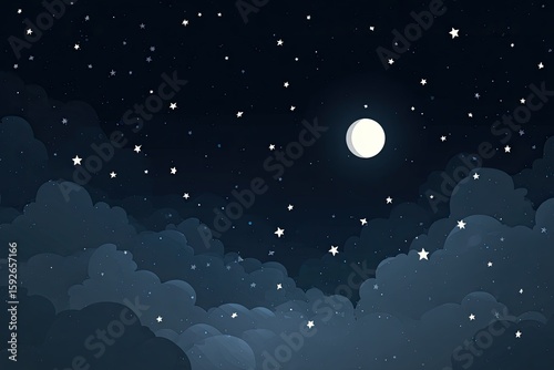 Fototapeta premium Night sky, moon, clouds, stars