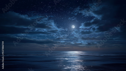 Obraz premium night sky, moonlight reflection on water, tranquil and magical mood, deep...