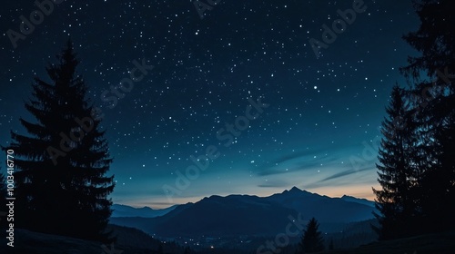 © batara, Fototapeta premium Night Sky Mountainscape with Starry Sky