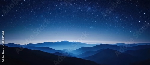 Fototapeta premium Night sky over layered mountains, peaceful scene, nature wallpaper