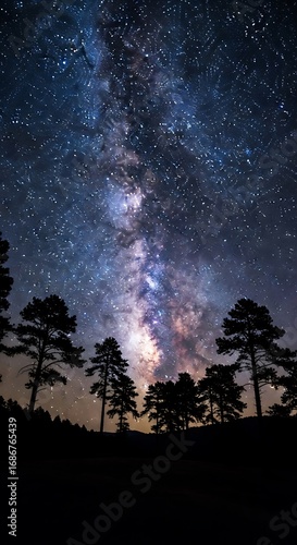 © purna, Naklejka premium Night Sky Over Silhouetted Trees.