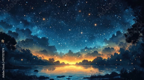 © rulrralr, Fototapeta premium Night Sky Over Water