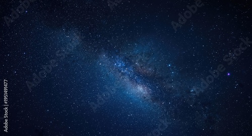 © AkuAku, Fototapeta premium Night sky panorama displaying a luminous open blue galaxy cluster