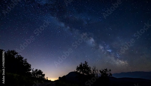 Fototapeta premium Night Sky Panorama Milky Way Galaxy Over Silhouetted Trees