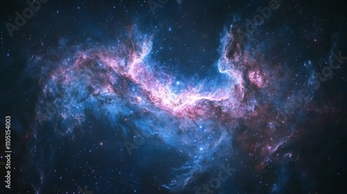 © Sinechana, Fototapeta premium 29.Night sky rich with stars and swirling galaxies, with faint glowing nebulae in the distance, against a deep indigo backdrop. Subtle hues of pink and blue blend into the cosmic dust, offering a