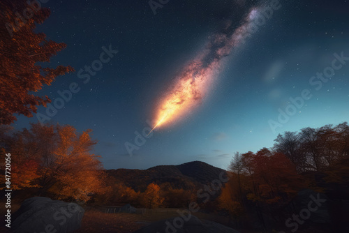 © design, Fototapeta premium 夜空, 星, 光, 流れ星, 隕石, 爆発, night sky, star, light, shooting star, meteorite, explosion