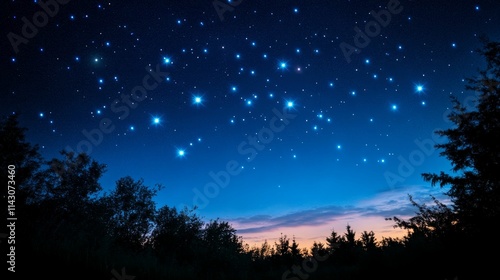 Fototapeta premium Night sky, stars, trees, twilight, serene.