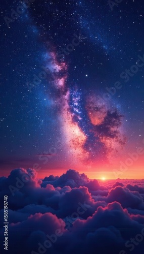 Fototapeta premium Night sky, twinkling stars, glowing nebula clouds, space, orange, cloud
