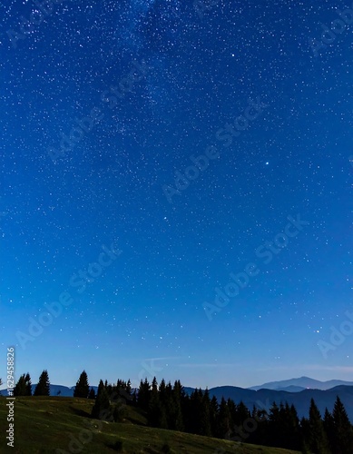 Fototapeta premium Night sky with a vast expanse of stars above a dark mountain range