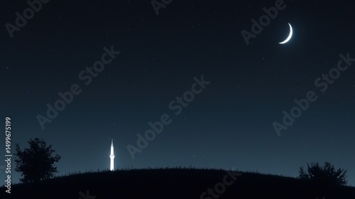 © nani, Naklejka premium Night sky with crescent moon, and lone tower.