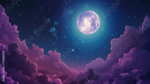 © buraratn, Naklejka premium Night sky with full bright moon in the clouds