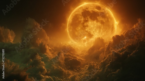 © mirifadapt, Fototapeta premium Night sky with full bright moon in the clouds, cinematic moon and clouds,