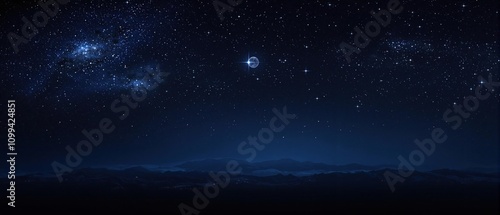 Naklejka premium Night sky with glittering stars and a full moon, , stellar showcase