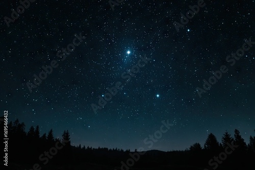 © Ione, Fototapeta premium Night sky with stars and forest silhouette