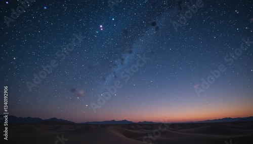 Fototapeta premium Night Sky with Stars Over Desert Dunes at Twilight Horizon
