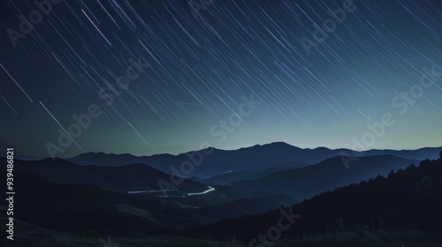 © Jardel Bassi, Fototapeta premium Night Sky with Time-Lapse of Star Trails over Mountain Range