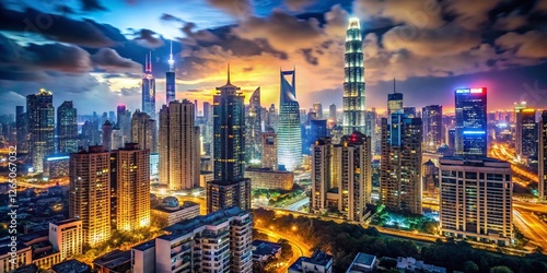 © prapatsorn, Obraz premium Night Skyline, Developing Nation, Technological Advancement, Documentary Photography
