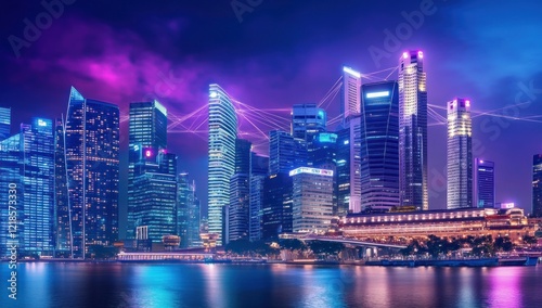Fototapeta premium Night Skyline of Singapore's Vibrant Metropolis