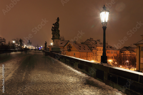 © Kajano, Naklejka premium Night snowy Prague Charles Bridge