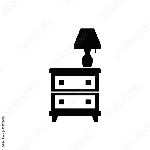 © fahmi, Fototapeta premium Night stand with lamp icon in black flat glyph, filled style isolated on white background