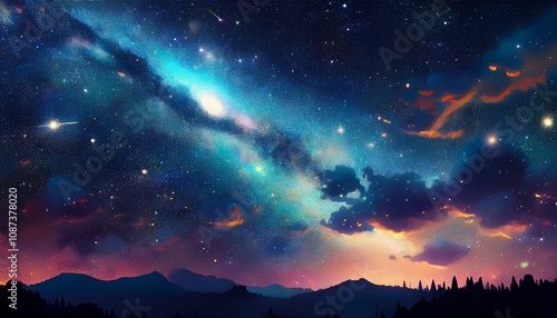 © Rindi, Naklejka premium Night starry sky. Galaxies and deep space