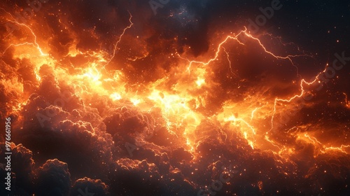 Naklejka premium Night storm with electric energy charging the sky, powerful lightning bolts creating a dramatic atmosphere