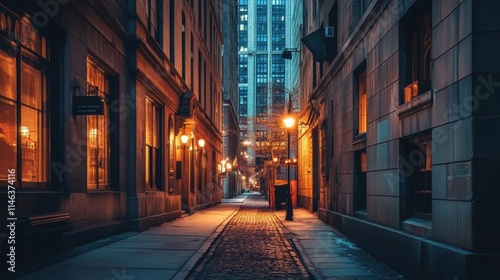 © arisa, Fototapeta premium night street scene in city alleyway